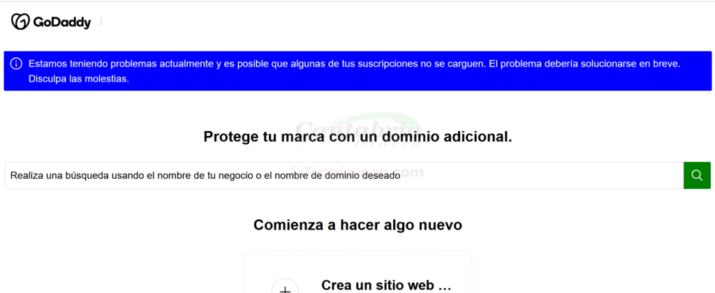 Durante toda la mañana de este lunes 20 de octubre, cientos de servicios web no funcionan con normalidad. En la captura de pantalla que ilustra esta noticia aparece en GoDaddy el mensaje de error que indica que el gigante de los nombres de dominio y alojamiento está teniendo problemas técnicos.