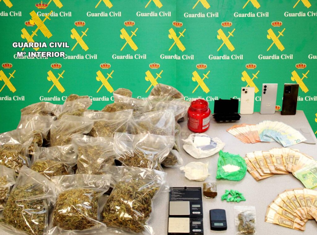 La Guardia Civil ha intervenido diferentes cantidades de cocaína, hachís, marihuana, metanfetamina, sustancia de corte, y todo lo necesario para la dosificación de la droga