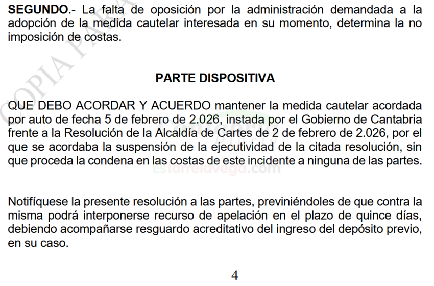 - La resolución de la alcaldesa de Cartes que ordenaba paralizar el centro de acogida de menores seguirá suspendida - 9 de febrero de 2026