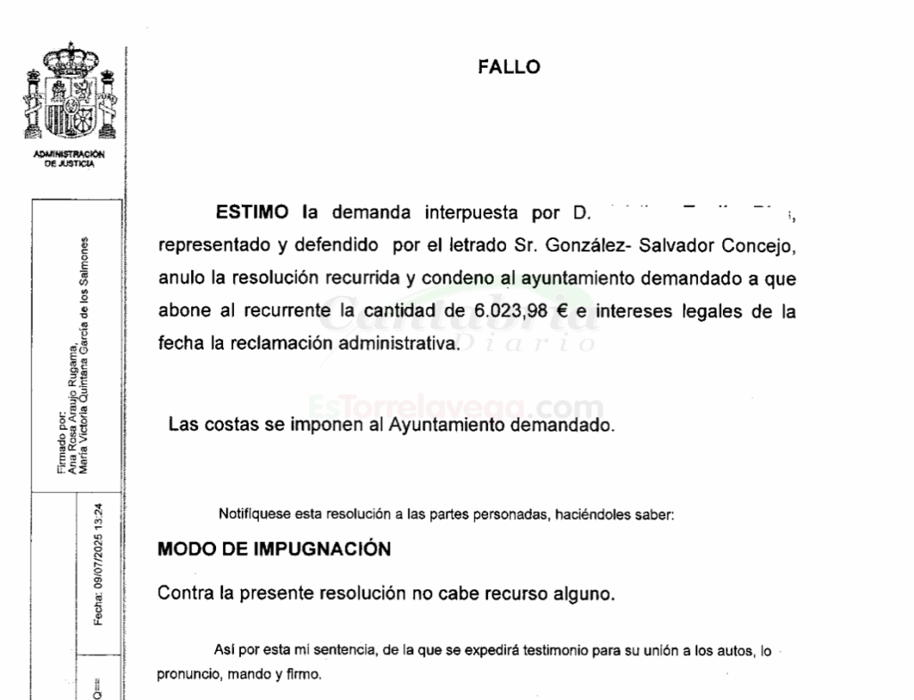 Se imponen las costas al Ayuntamiento y contra el fallo no cabe recurso alguno