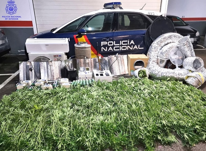 En la operación policial se ha llevado a cabo el registro en un inmueble, donde se ha incautado: 188 plantas de marihuana en su último estadio de floración, diversa cantidad de hachís, múltiple material destinado a la actividad ilícita (ventiladores, extractores, pantallas reflectoras, lámparas halógenas, tubos de aluminio, filtros de aire, termostatos, deshumificadores, etc.), una virola, varias armas blancas y teléfonos móviles