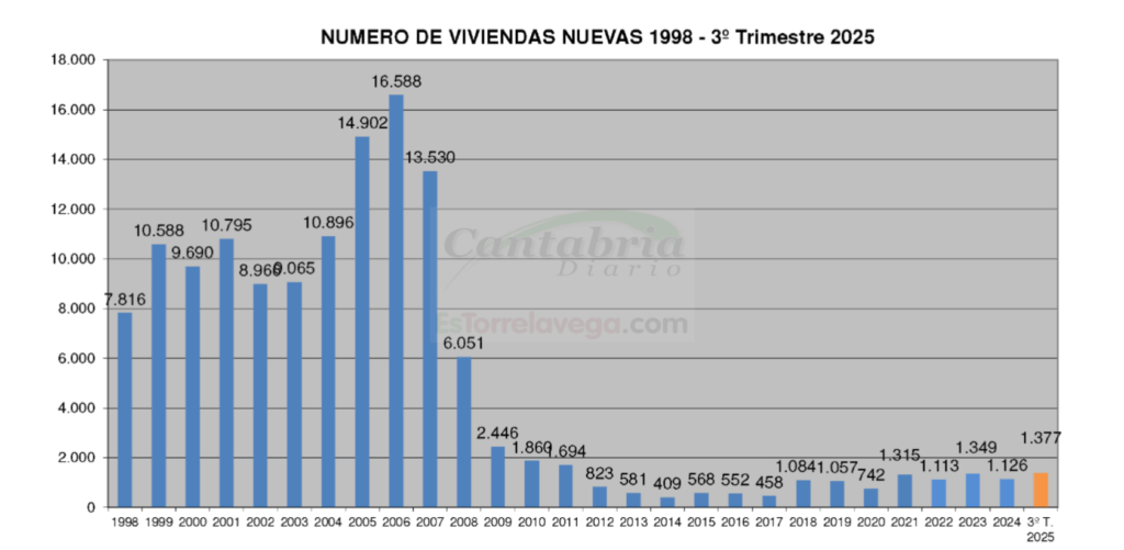El Colegio Oficial de la Arquitectura Técnica de Cantabria ha elaborado una estadística de viviendas de obra nueva y rehabilitación con datos correspondientes al Tercer Trimestre de 2025, a través de los expedientes de construcción por un total de 341 viviendas.