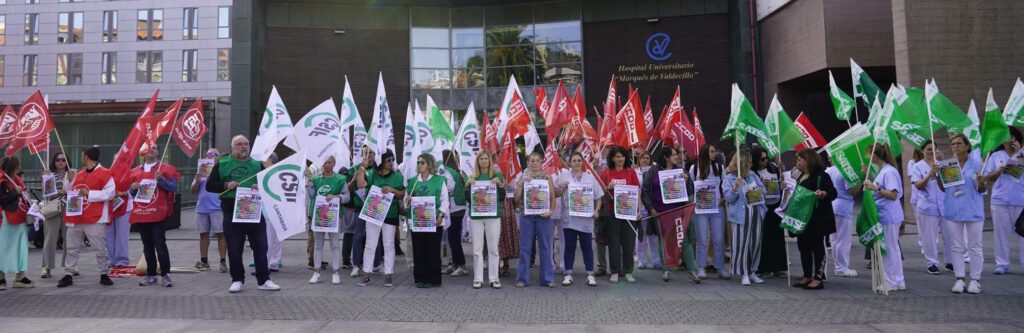 Los sindicatos se han concentrado a las puertas del Hospital Valdecilla ante la parálisis de la Administración para reclamar una reclasificación profesional justa y adecuadamente retribuida, jubilación parcial con cobertura inmediata en las plantillas, jubilación anticipada y voluntaria sin penalizaciones así como una buena organización de la jornada laboral tanto ordinaria como complementaria, con efectos reales y sin recortes encubiertos