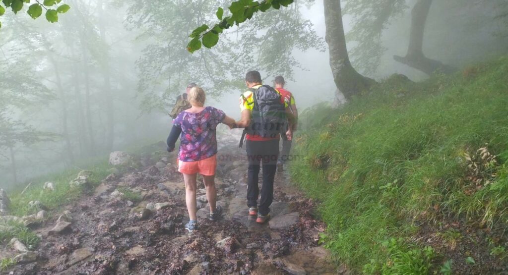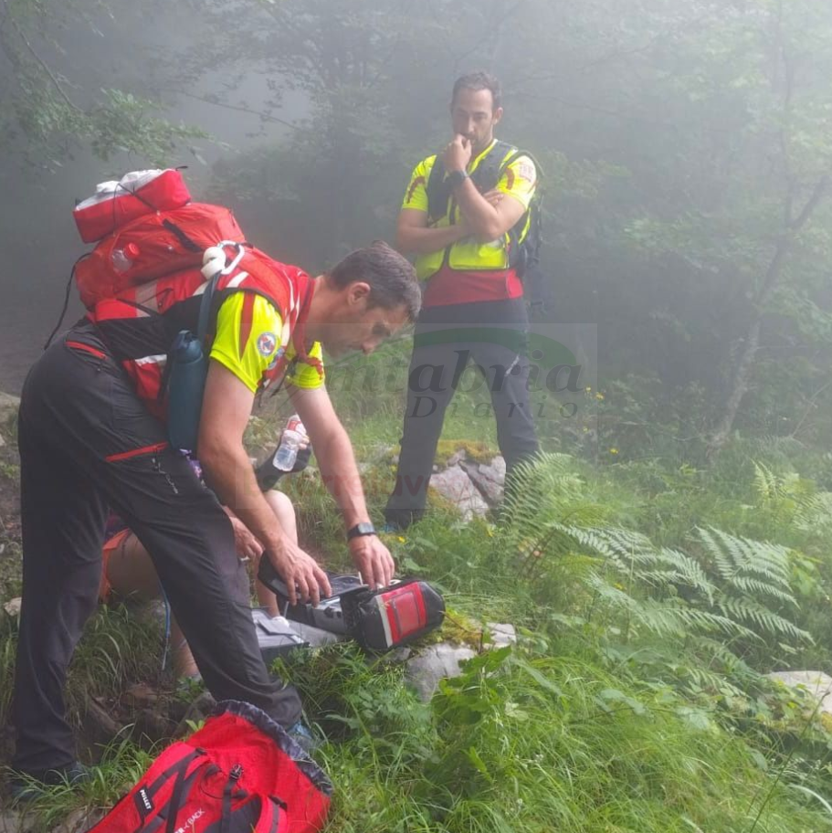 Tras una primera valoración médica y el suministro de agua y alimento energético, los rescatadores han acompañado a la accidentada y a su acompañante andando hasta el 4×4 y, posteriormente, los han transportado hasta su vehículo, aparcado en el parking del los Collados del Asón.